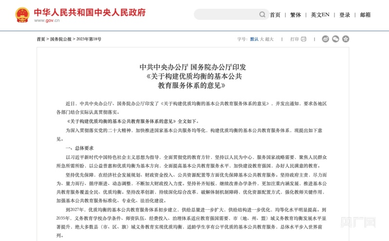 中共中央办公厅★★ღ✿✿、国务院办公厅印发《关于构建优质均衡的基本公共教育服务体系的意见》(央广网发)